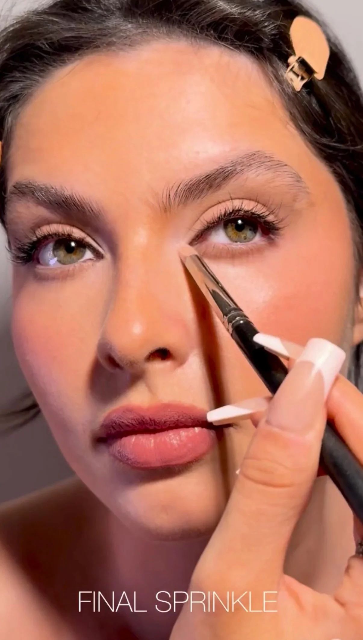 Choose your Tools ! A small tapered brush is ideal, once you reach the end, move the brush in small circular motions. With what's left on your brush pull a soft wing.